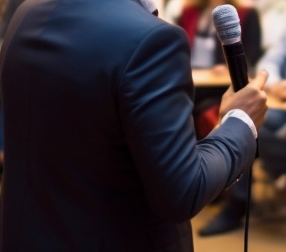 Curso de Oratória com técnicas de voz e postura para apresentações comerciais.